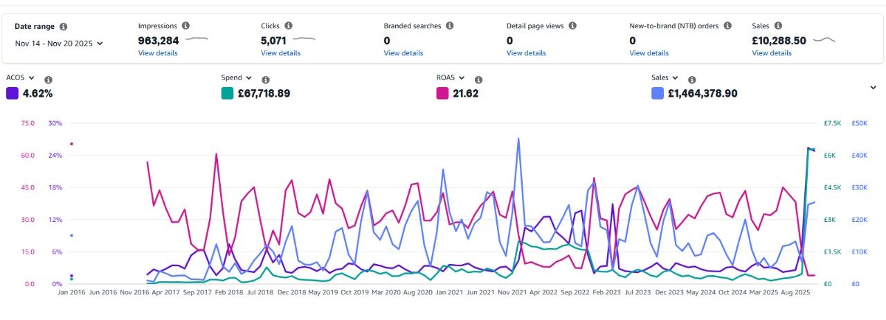 Full Amazon PPC management with optimized bids and keyword targeting.